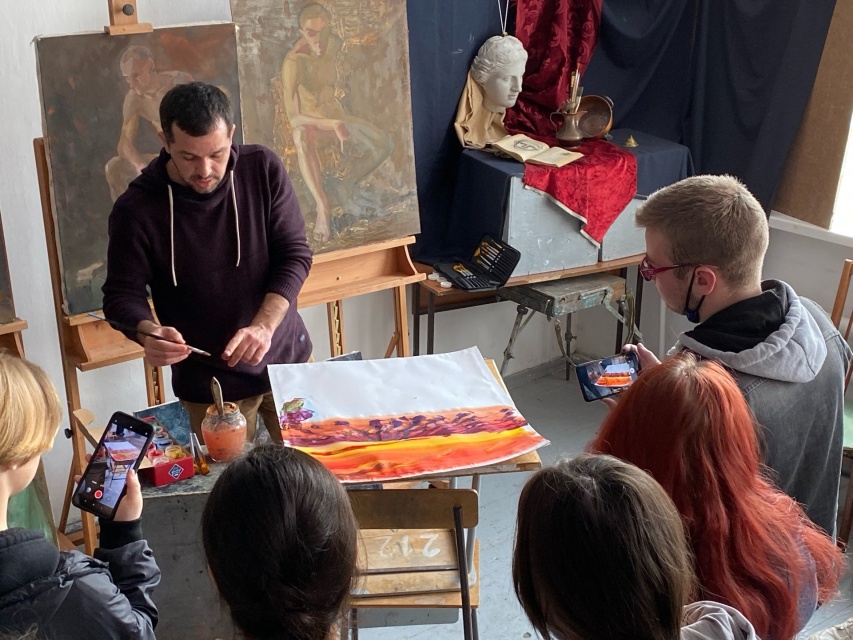 | În cadrul Catedrei de pictură sunt studiate discipline fundamentale, care oferă studenților un suport teoretic și practic pentru studiul interdisciplinar al istoriei și teoriei artelor și tehnicilor picturii. Aceste cursuri orientează activitatea cognitivă și creativă a studenților spre formarea unui sistem coerent de noțiuni teoretice și a unor modalități practice de exprimare artistico-plastică. Studiul culorii completează abilitățile studenților în utilizarea creativă a limbajului plastic. Practica plein-air, coordonată de Catedra pictură, este o componentă importantă a procesului de studii, orientată spre dezvoltarea și perfecționarea competențelor în domeniul picturii și desenului. Această practică presupune redarea iluminării în aer liber, spațialității și perspectivei aeriene, reprezentarea formelor reale, nuanțelor de culoare observate direct în natură. Lucrul în plein-air contribuie la formarea gustului artistic și dezvoltă imaginația, competența de analiză conștientă a formelor văzute și a variațiilor cromatice.